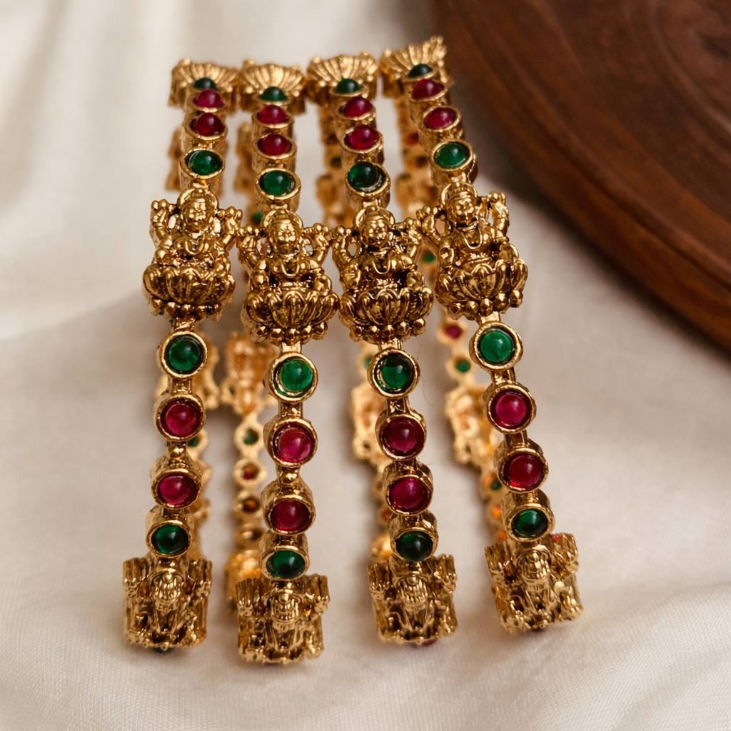 LAKSHMI DEVI BANGLES WITH EMERALD AND RUBY STONES